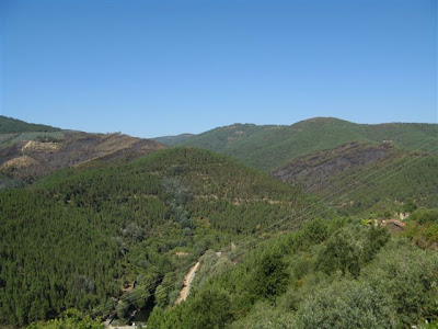 A paisagem verde está agora beliscada por esta mancha negra que por pouco não atingiu as povoações de Açor e Ádela e se aproximou de Cepos, no vizinho concelho de Arganil.