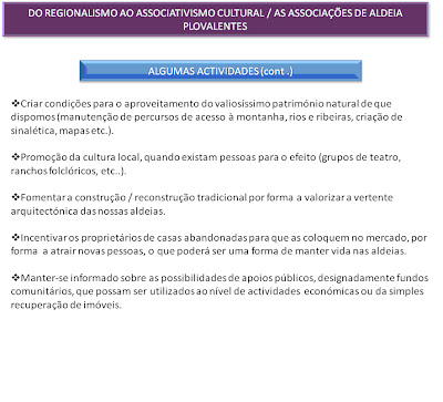 Uma nova visão tendo em atenção as oportunidades e as ameaças que se colocam nos tempos actuais, numa tentativa de combater a desertificação que se vem sentindo nas nossas aldeias. É imperativo dar vida às nossas aldeias, atrair novos investidores e manter uma constante pressão junto das entidades locais.