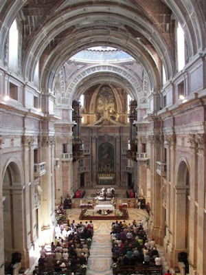 A direcção da Real Obra foi entregue a João Frederico Ludovice, ourives alemão, mas com formação de arquitecto em Itália. O modelo adoptado inspira-se na Roma Papal, um barroco influenciado por Bernini, sem esquecer algumas influências germânicas.
