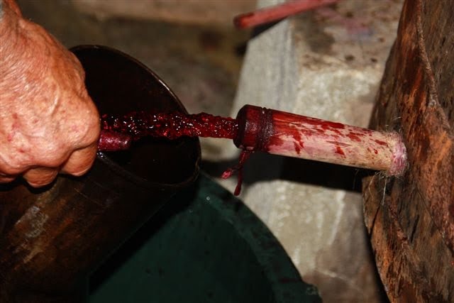 Quando a efervescência terminou, mais ou menos dez dias depois, o vinho começou a jorrar, impetuoso e tinto, pelo espicho da dorna em madeira e pelas torneiras das dornas em plástico.