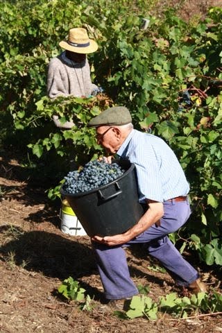 Entretanto, por aqui, terra pequena da serra, as videiras continuam a ocupar apenas as pontas das paredes, onde inicialmente foram plantadas para não roubarem terreno ao milho que constituía a base da alimentação. Muitas datam de infâncias longínquas, e as que já não têm quem lhes cuide dos forcões e varas rastejam tristes pelo chão, dando ainda assim cachos de bago miúdo, mas doce. Todas estavam carregadas este ano.