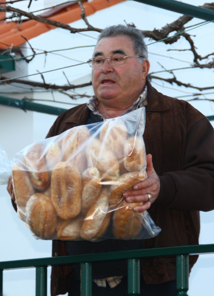 Cada participante que o deseje recebe um pão benzido e um punhado de figos secos, por vezes, duas ou mais dozes, dependendo das encomendas. Os figos apresentam-se agora dentro de um saquito de plástico (não vá a ASAE aparecer!), enquanto o pão há quem o continue a levar na mão, por ser mais seguro ou ecológico! Pela mesma razão ou por ser mais conforme com a tradição, há senhoras que trazem um saco de retalhos ou croché.