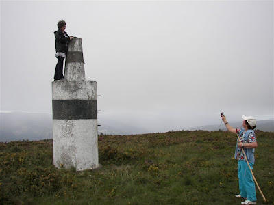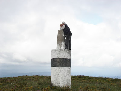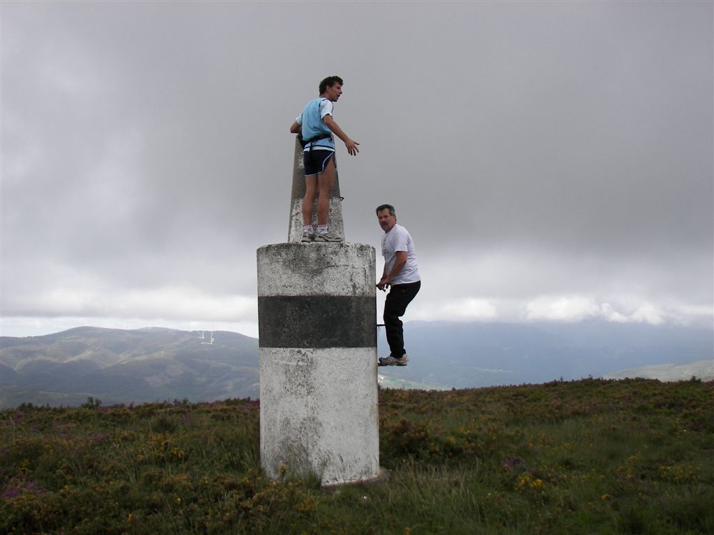alguma ginástica subiram o marco geodésico para a fotografia, aquela recordação
