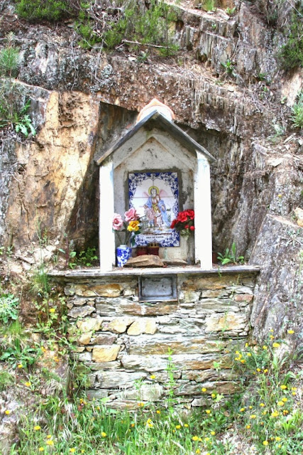 Casa Paroquial. Seriam um oratório em xisto com um pequeno nicho e um painel em