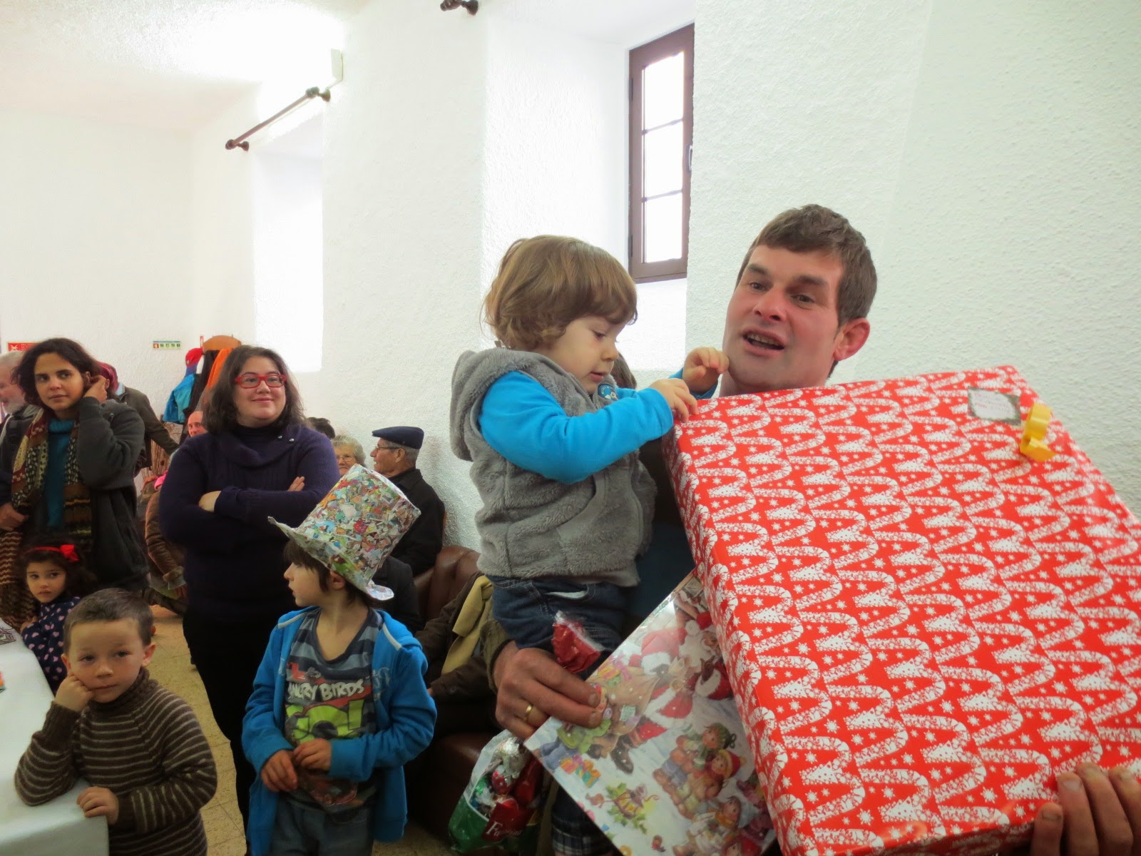 Após o lanche e porque a ansiedade tomava conta dos mais pequenos, o presidente da União pediu a “antigas crianças” – Nelson, Catarina, Ricardo, Francisco e Tiago, que, para recordarem o tempo em que recebiam as suas prendas, o ajudassem. E deram conta do recado. Com a particularidade de alguns já terem ali os seus filhos. Vejam e apreciam as expressões de alguns para quem a longa espera valeu a pena.