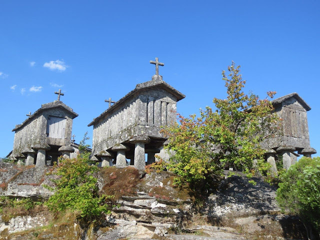 Possui um grandioso conjunto de espigueiros (classificados como imóvel de interesse público desde 1983) erigidos sobre uma gigantesca laje granítica e que, ainda hoje, são utilizados para secar o milho, pelas gentes da terra. O mais antigo data de 1782. Estes monumentos de granito foram construídos na altura em que se incrementou o cultivo do milho e serviam para proteger o cereal das intempéries e dos animais roedores. As suas paredes são desunidas para que o ar circule através das espigas empilhadas. No topo são geralmente rematados por uma cruz, que significa a invocação divina para a protecção dos cereais.