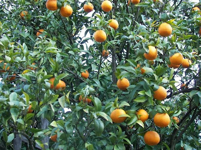 Laranjas à distância de um braço para saciar a sede de alguém que passe. Bonitas, sem maleita.
