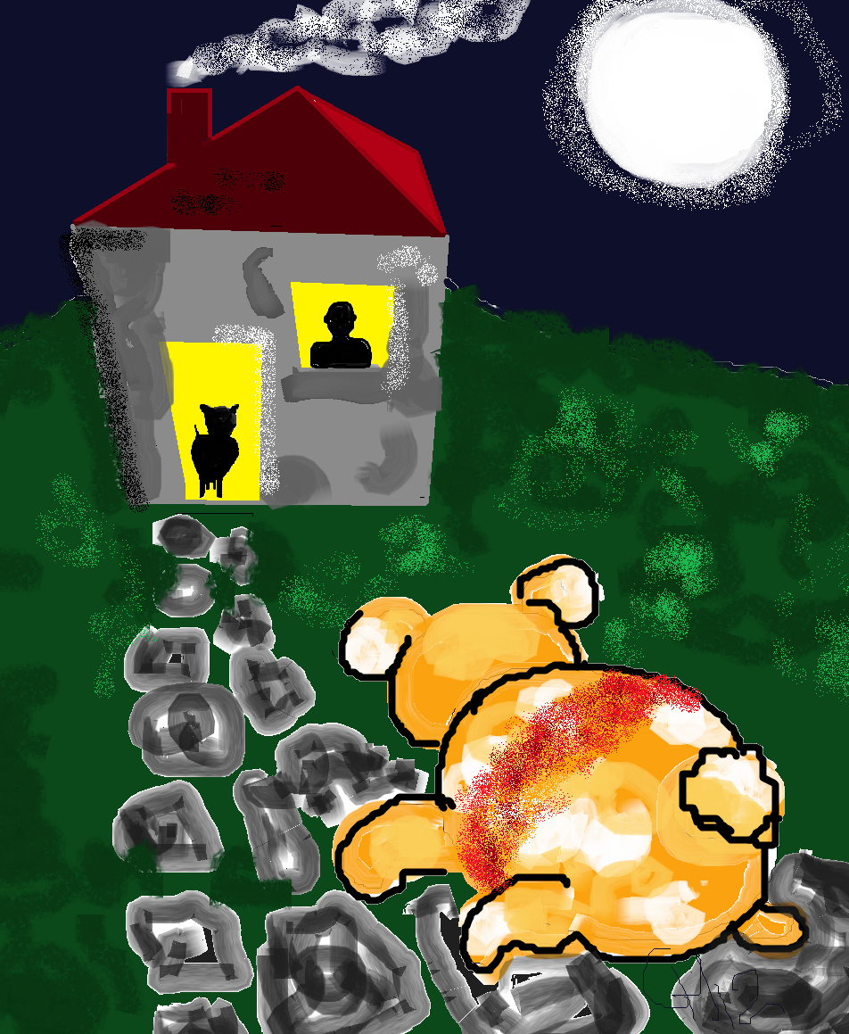 casa ao anoitecer, cansada e cheia de fome, sangrando do rasgão fundo que o aço