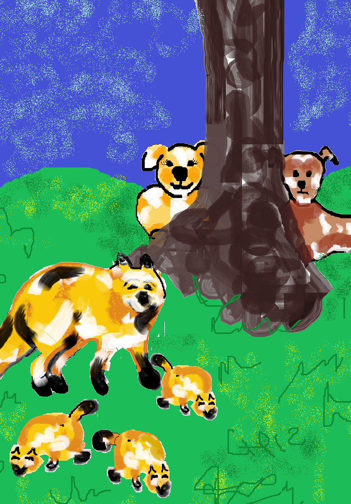 se apercebeu da presença do casal, a raposa fugiu apressada, com os pequenos