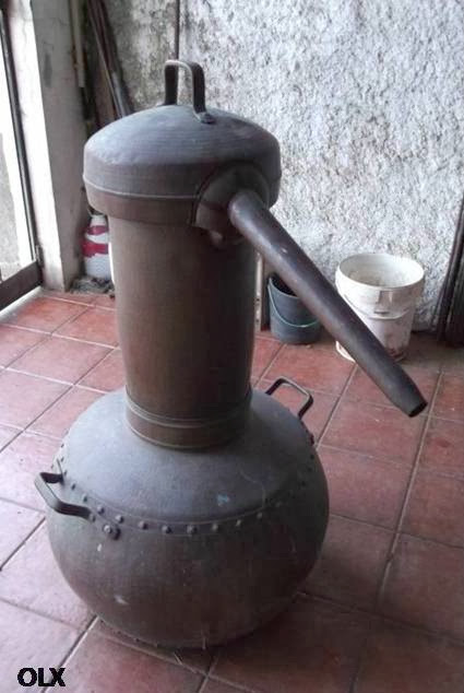 como ao tubo de arrefecimento e à aguardente já produzida. Imagine-se a